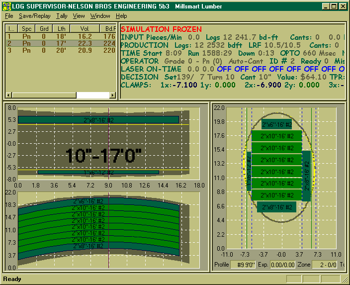 Log Optimization is always time limited. No optimizer attempts every possible offset, taper and curve path. Therefore, the design of the system requires tradeoffs in computing hardware and software. Computer hardware gets faster every year, so NBE tends to avoid exotic processors, multiple computers and other hardware configurations that sound good today, but quickly becomes expensive junk. We have always used a single optimization computer from a common vendor (i.e. Dell, Compaq, HP, etc.). NBE believes that effort spent improving the speed of the optimization algorithm, pays off forever, while the effort and money spent on exotic hardware only pays off until it's advantage is eclipsed by next year's standard computer.